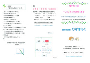 個別学習塾 「びすぽうく」が港南台3-16-27-302に引っ越ししました。電話番号 045-832-5888