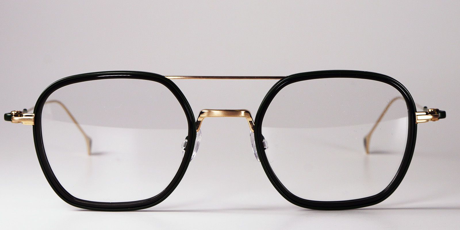 ちょっと大きめの個性的なツーブリッジフレームです。